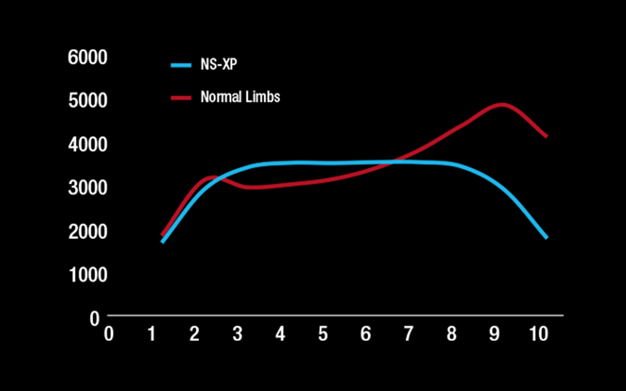 NS-XP는 활의 휨 분포와 스피드의 상관관계를 분석하여 힘의 전달과 분산을 가장 이상적인 곡선으로 설계하였습니다. 과도한 상단 휨을 억제하고 전체적으로 균일한 휨을 구현함으로써 판소 위험을 줄이고 슈팅 안정성과 일관성을 극대화합니다. |