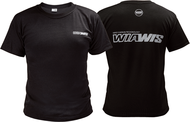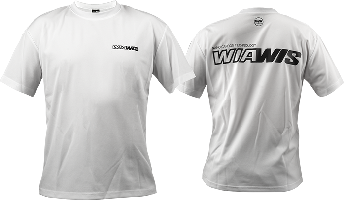 2018 위아위스 기능성 티셔츠는 검정 또는 흰색 배경 위에 위아위스(WIAWIS) 로고가 왼쪽 가슴에는 작게, 등쪽에는 크게 디자인되어 있습니다.