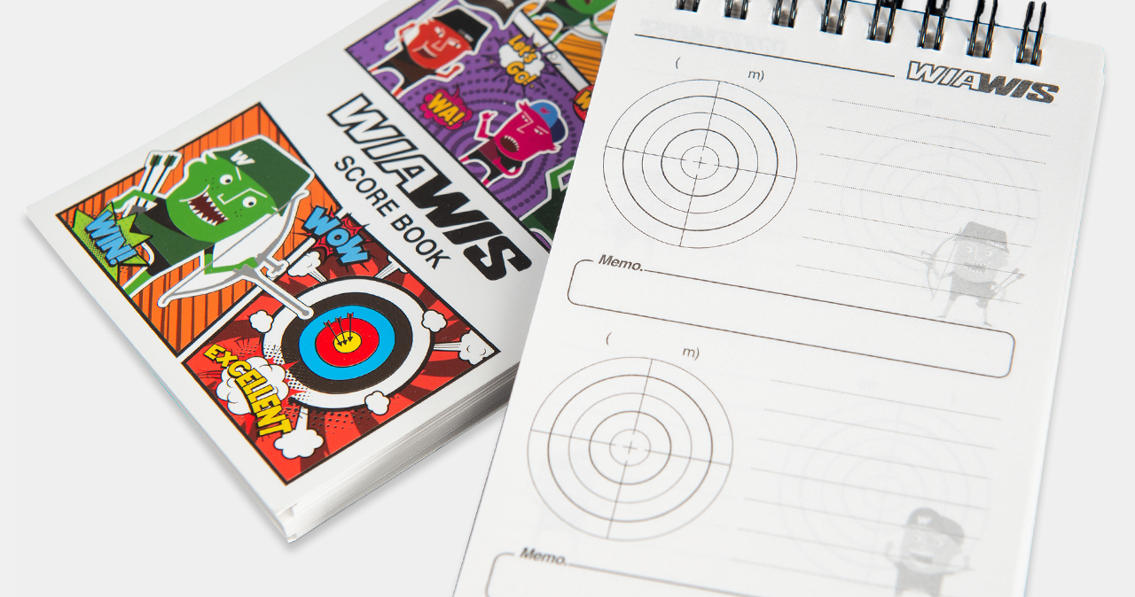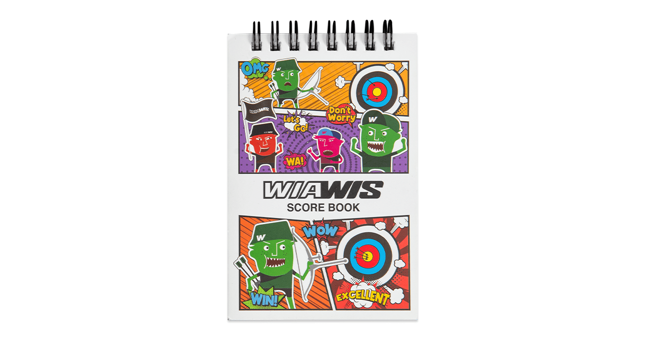WIAWIS의 귀여운 캐릭터가 그려진 양궁 전용 기록 수첩입니다.